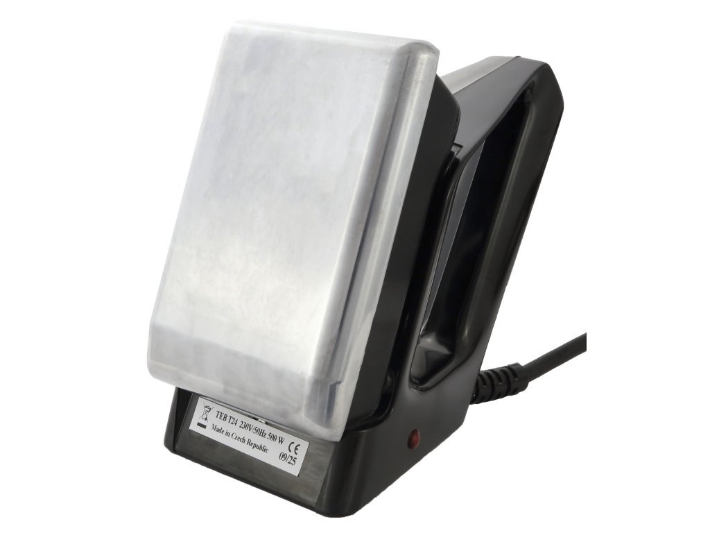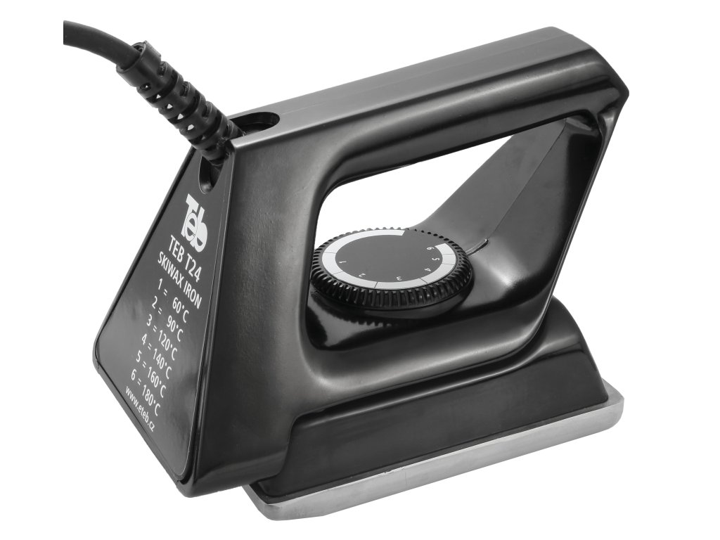 TEB T24 je cenově velmi dostupná voskovací žehlička. Voskovací žehlička překvapí moderním designem. Rozměry žehlicí desky 133 x 99 mm. Žehlicí deska silná 14 mm se hodí jak na sjezdové lyže, tak snowboard a běžky. Plynule nastavitelná teplota v rozsahu od 60 - 180 °C. Napětí spotřebiče je 230 V s příkonem 500 W. Voskovači žehlička disponuje světelnou LED signalizaci, která signalizuje nahřátí žehličky. Výrobek je dodáván s českým návodem. Voskovací žehlička je vyrobená v České republice.